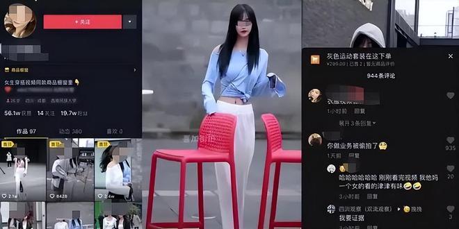 蓝衣小姐姐共出场2次,号称蓝衣战神,2021年被全网疯传被指疑似某音网红,疑似的原因就是这套蓝衣白裤,不过经过细节对比并不是某音网红。不过真相对我们来说不重要,大家看看就可以了。值得一提的是该小姐姐数钱的动作也在很多微信群流传。